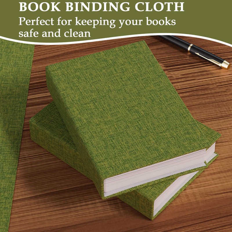 AKONEGE Book Cloth for Book Binding 35 x 16 Inch Fabric Surface and Paper Backed, Strong, Easy to Use, Fabric Materials Bookbinding Supplies Bookcloth for Scrapbooking Album DIY Crafts, Olive Green