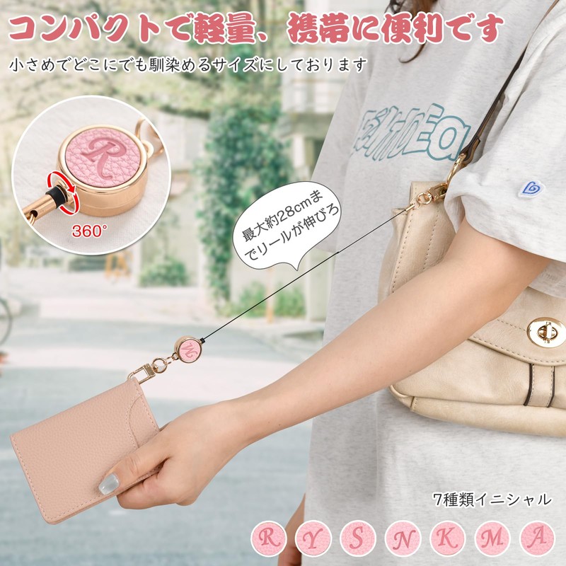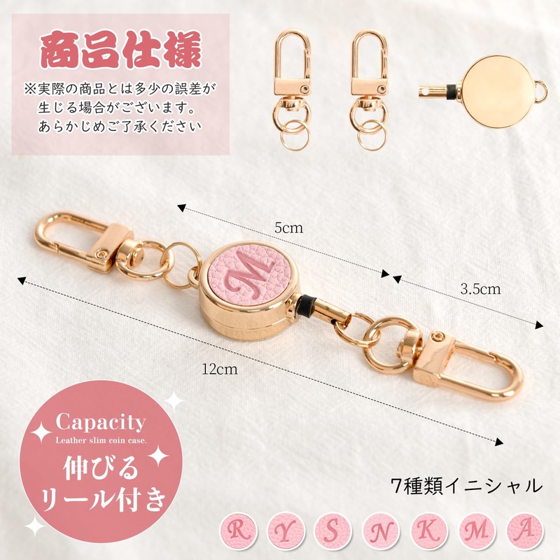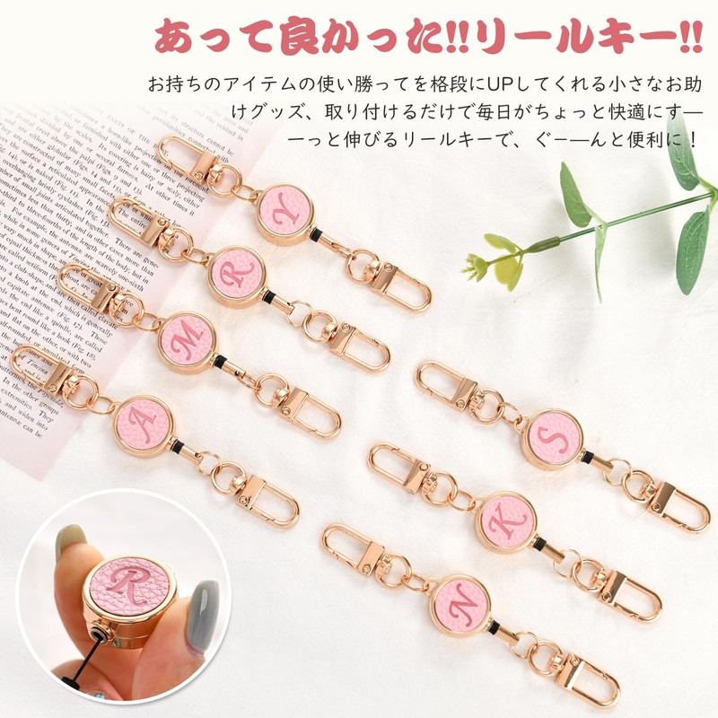 akoyo Key Reel, Reel, Carabiner, Compact, Lightweight, Keychain, Key Ring, Extendable Reel, Cute, Initial 11.0 inches (28 cm), Stretchable, Strong, Pass Case, Key, PU Leather, For Retractable Hanging