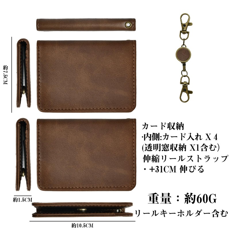 akoyo Men's Commuter Pass Case with Reel Storage for 4, Dark Brown