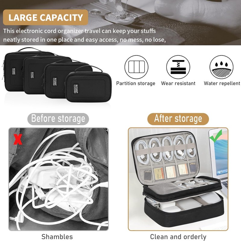 - Large Capacity, padded Protect Perfectly: The 4pcs tech organizer are roomy enough to store your various electronic accessories, like charger, wire, adapter, plug, headphone, external hard drive, mouse and other travel electronics. This electronic cord organizer travel can keep your stuffs neatly stored in one place and easy access, no mess, no lose, no damage