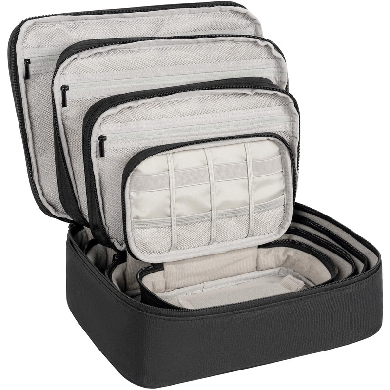 AKOZLIN Padded 4pcs/set Double Layer Travel Organizer Office Cord Cable Electronics Accessories Bag Electrical Cord Management Case Black