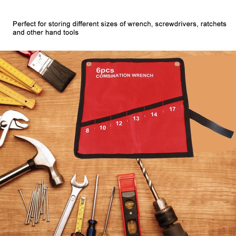 Akozon Drill Bit Roll Multi Pocket Roll Up Tools Storage Bag Spanner Plier Wre Holder (6 Mouthfuls)