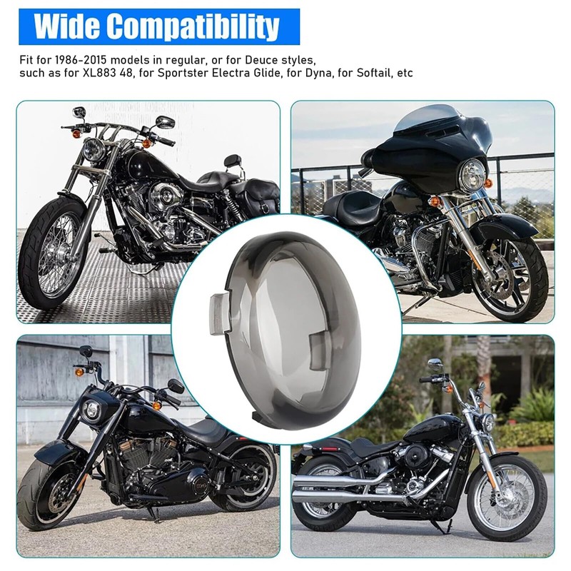 - Wide Compatibility: These turn signal light lens covers are compatible with various models manufactured between 1986 and 2015, including for XL883 48, for Sportster Electra Glide, for Dyna, for Softail, and more. Whether your motorcycle has a regular or Deuce style, these lens covers are tailored to fit and enhance its overall appearance and visibility on the road.