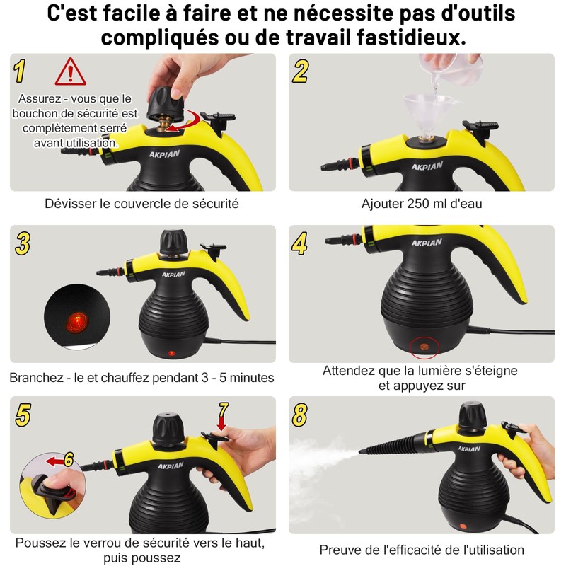 - 【Powerful Hot Steam】: AKPIAN Steam Cleaner heats to produce 221°F (105°C) high temperature steam to clean grime, dust, grease, and more. Make your home as good as new.