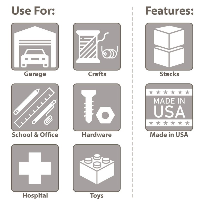 - GREAT FOR- Hardware storage, parts storage, kitchen utensils, under sink storage, organizing the inside of drawers, refrigerators etc., Organizing classrooms, garage, play areas, lego, pantry or small toy storage, hospital supply rooms, and much more