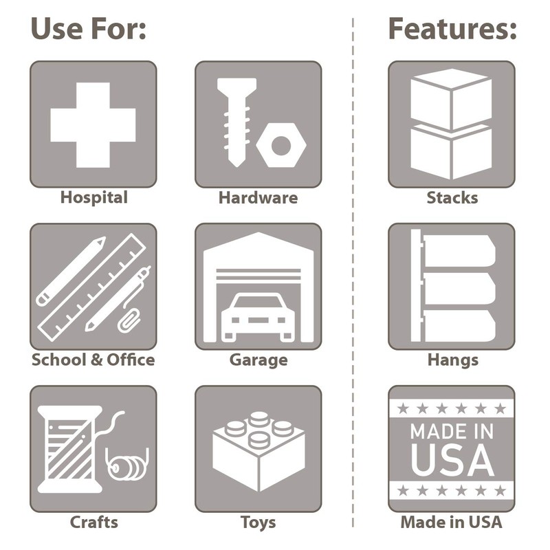 - STACKING BIN DIMENSIONS: Outside Dimensions - 7-3/8" x 4-1/8" x 3"; Inside Dimensions - 6-3/4" x 3-7/16" x 2-13/16"; They fit in many desk drawers (check height of drawer first); Proudly made in the USA