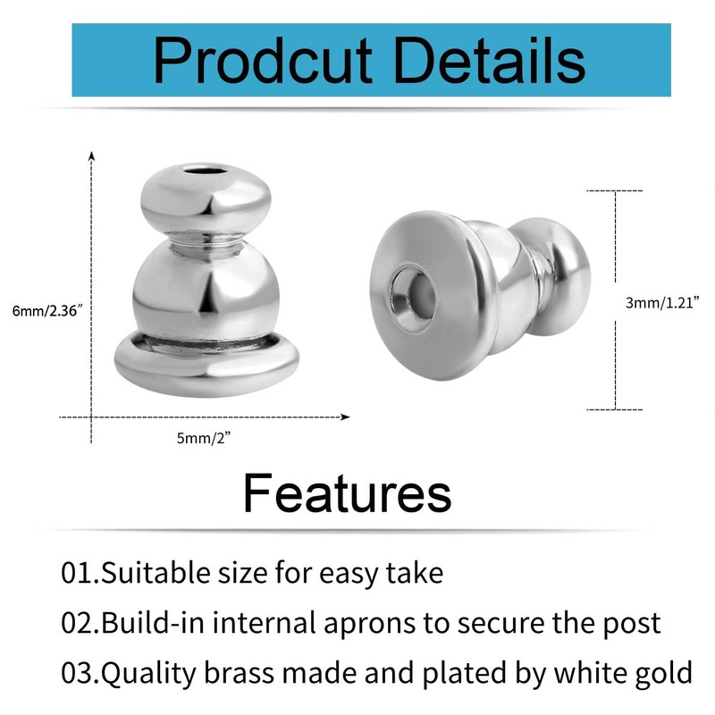 - Our locking earring backs come in a standard size of 6mm x 5mm*5mm, making them a perfect fit for earrings posts measuring 0.031-0.042 inches. They're lightweight and comfortable, so you'll hardly even notice you're wearing them.