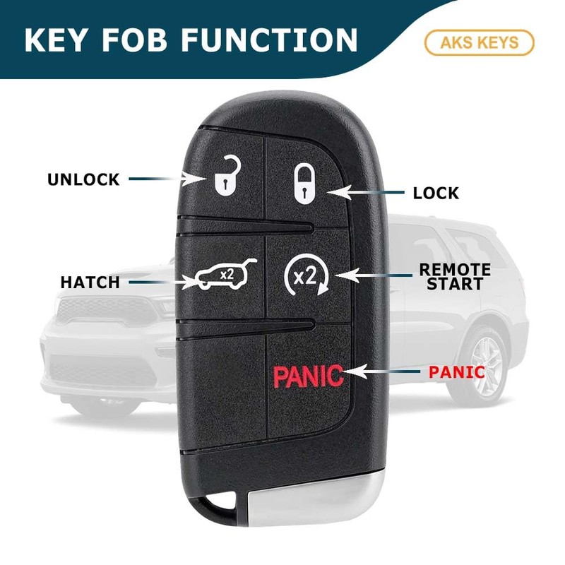 AKS KEYS Replacement for Dodge Key Fob 5 Buttons That Use FCC M3N-40821302 and Part Number 68150061AC Compatible with 2014 - 2024 Durango