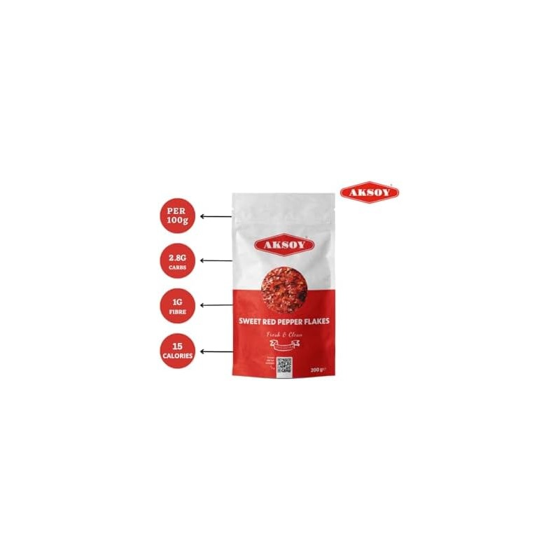 Aksoy Premium Quality Turkish Sweet Red Pepper Flakes 200GR | Flakes Size 3-4mm | Mild, Sweet & Flavorful | Perfect for Cooking, Seasoning, Garnishing & Enhancing Dishes