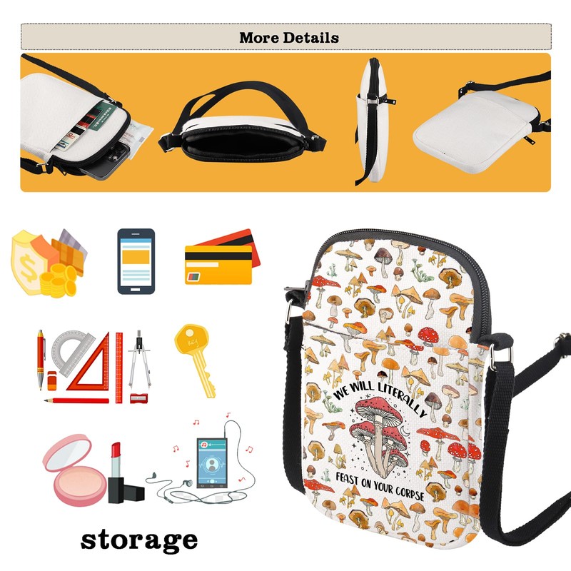 AKTAP Mushroom Themed Gifts Mushroom Crossbody Purse for Mushroom Fungi Lover Gifts Mushroom Accessories (CB, Mushroom Mini CB-HT)