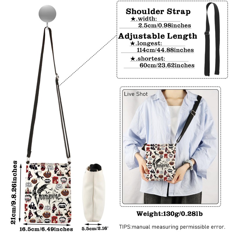 - 【MEASUREMENT】: The cross body bag is divided into two states, the first is unused, the size is (L * W * H) : 21*19.5*1cm/8.26*7.6*0.39’, and the second is used, the size is (L * W * H) : 21 *16.5*5.5cm/8.26*6.49*2.16’. Secondly, The shortest length of the bag can be adjusted is 60cm/23.62’, and the longest length is 114cm/44.88’, which is suitable for most body types. Total Weight:130g/0.28lb. TIPS:manual measuring permissible error.