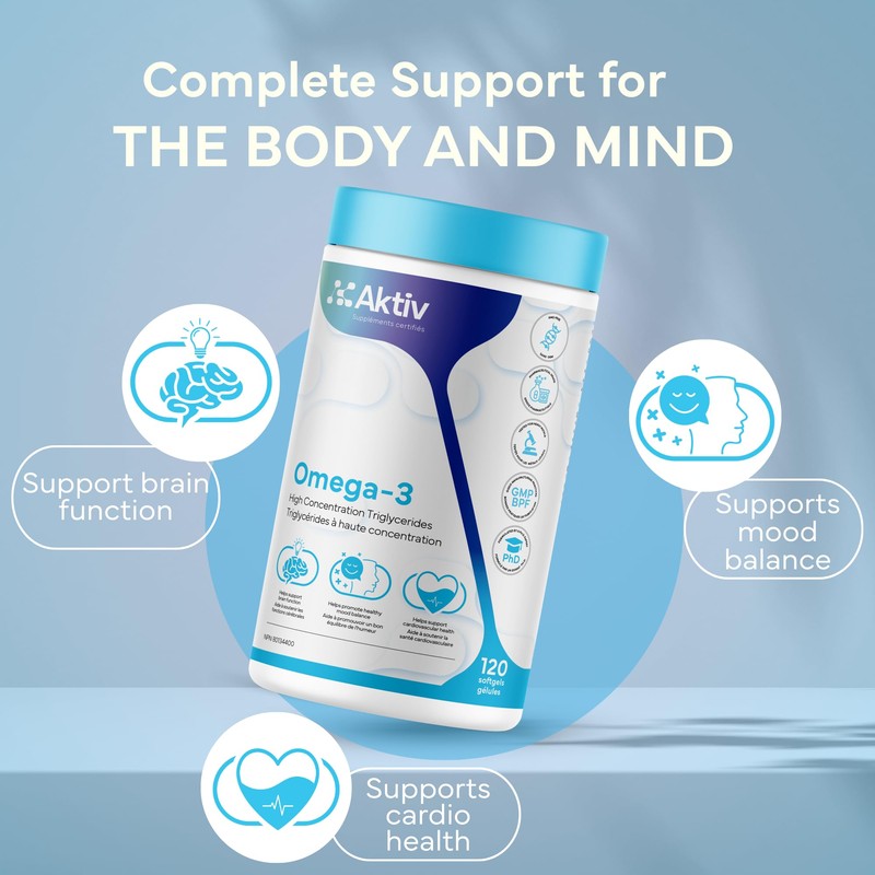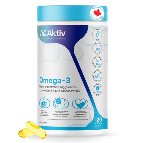 Aktiv Omega-3 Supplement – 120 Capsules – High Absorption Triglyceride Form – 400mg EPA & 300mg DHA – Heart, Brain & Joint Support – by Jimmy Sevigny