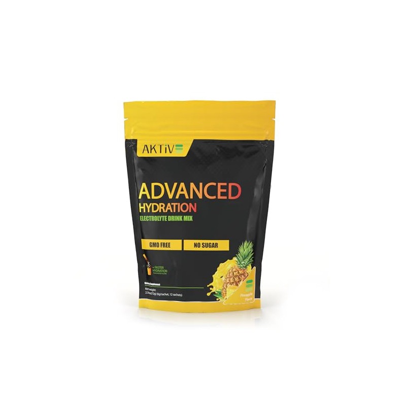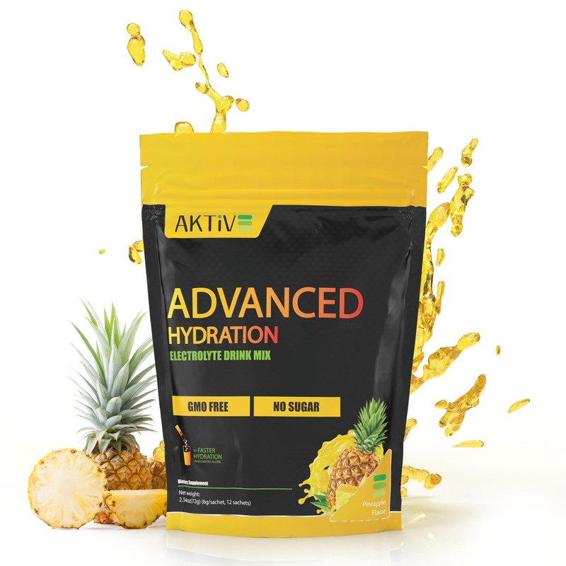Aktive Supplements Advanced Hydration Electrolyte Drink Mix, Pineapple Flavor, Sugar-Free, GMO-Free, 12 Sachets (12 Packets, Pineapple)