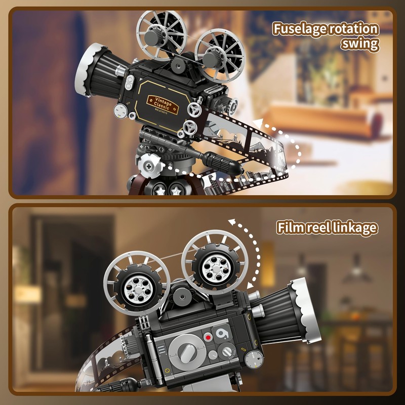 - Projection function & Unique toyThe film camera building block toy can be used as a projector. The included light and film can project images onto the wall. It not only allows you to enjoy the fun of building, but it can also be a projection toy. The body can be rotated left and right, and the clever linkage of the film reel makes photography more creative and dynamic. Experience the magic of art with these intricate block animations that make every viewing a fascinating spectacle, ensuring that your space is both beautiful and visually appealing.
