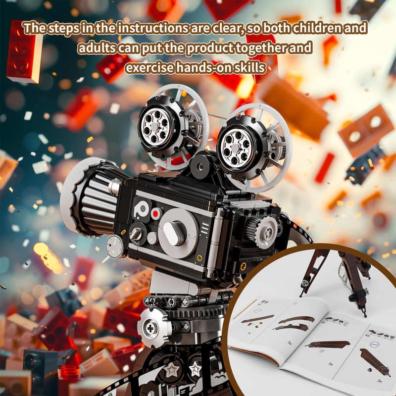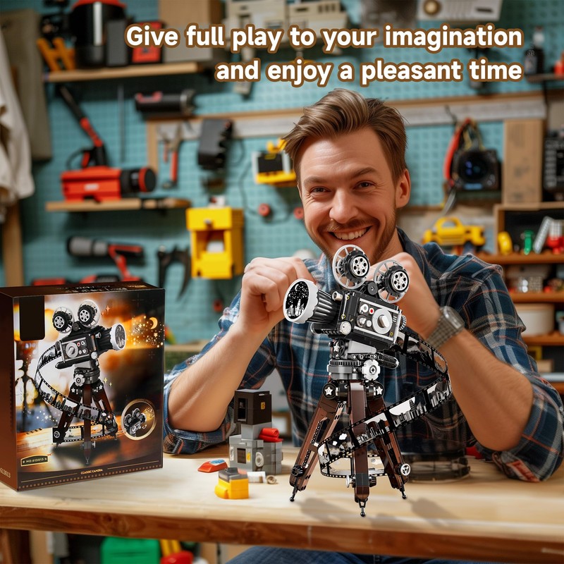 - Retro building block set & Creative joyThis retro camera building block model makes your interior environment full of vintage atmosphere, the unique and exquisite film reel design will bring you into the golden age of the movie, and become the highlight of the interior decoration, assembling this model is not only a process of completion, but also a creative journey that brings you back to the world of vintage movies.