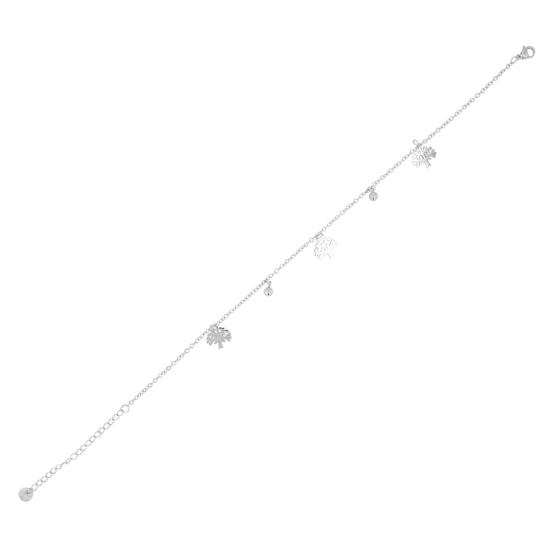 Akzent Fußkette Damen Edelstahl 24+5 cm verstellbar – Fußkettchen „Ysoria“ mit Lebensbaum & Kugelanhängern, silber- oder goldfarben