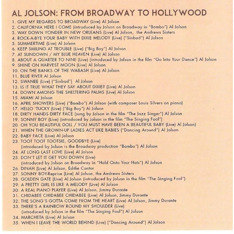 - Release Title: Al Jolson: From Broadway to Hollywood