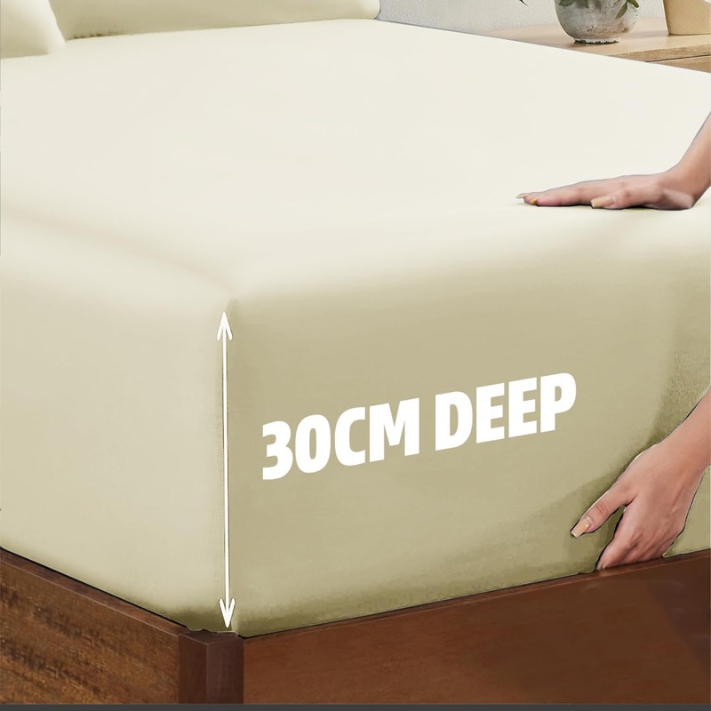 AL NOOR HOME Premium Cream Fitted Sheet - 100% Pure Egyptian Cotton with 300 TC - Hotel Quality 30cm Deep Single Fitted Bed Sheet