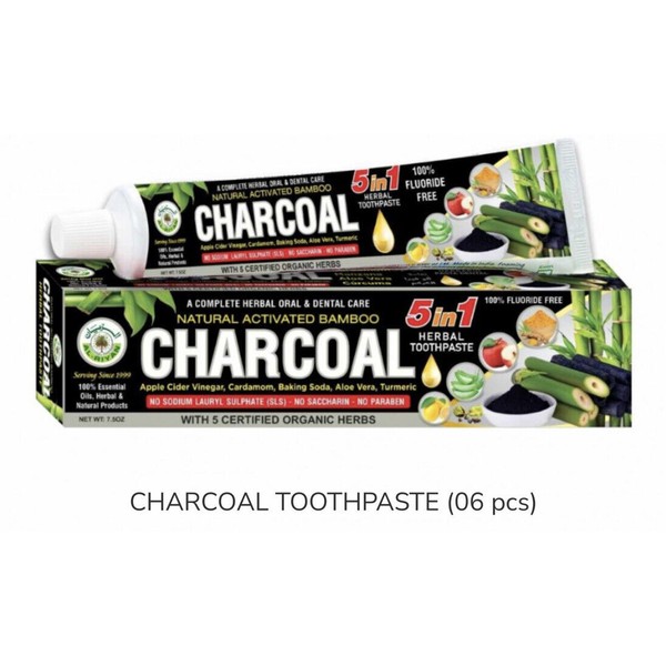 Al-Riyan Organic Bamboo CHARCOAL Herbal Toothpaste By Al-Riyan 5 in 1, 100% Fluoride Free