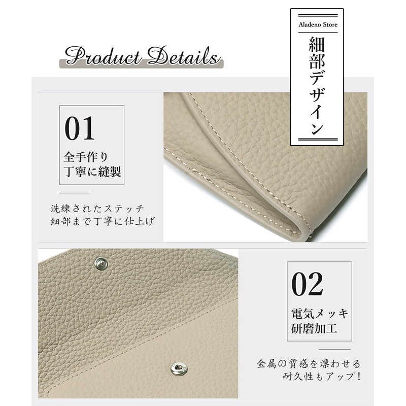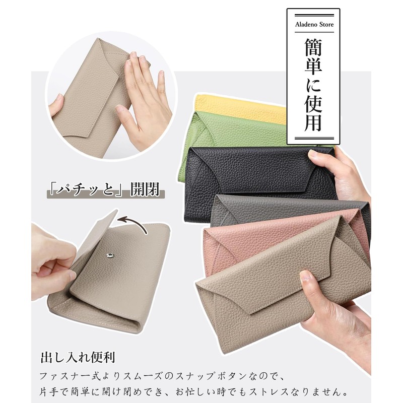Aladeno Women's Long Wallet, Genuine Leather, Envelope-Shaped Wallet, Large Capacity, Thin, Compact, Ultra Lightweight, Cashless, Coin Purse, Card Slot, Skimming Prevention, RFID Flap Button, Long