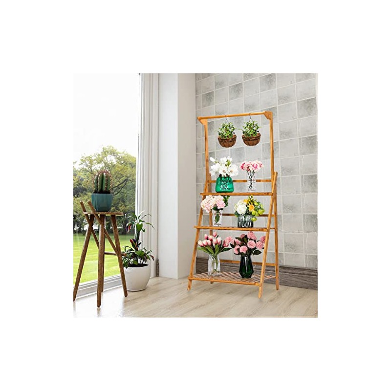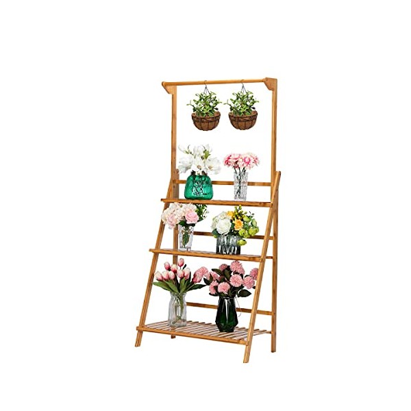 ALAEUS 3 Tier Hanging Plant Stand, Foldable Bamboo Shelf Plant Stands for Mul...