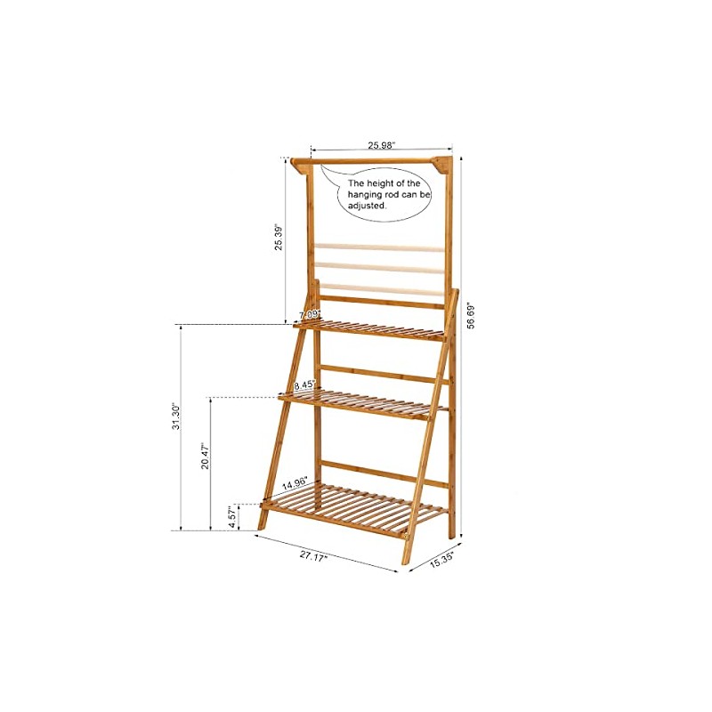 Bamboo 3 tier foldable ladder shelf thick flower rack,which is strong bearing capacity and more stable, is suitable for potted plants, flowers and succulent plants. This indoors bamboo plant stand holder displays your plants well, so that your plants can enjoy the sunshine in a comfortable environment. You can also easily view them at any time. It is made of high-quality natural bamboo material, which is safe, durable and has long service life. This shelf can be used for flowerpots in the garden, you can also use it as a organizer, storage rack, to put shower gel,bath towels, clothes, slippers. You can use this shelf on the balcony or in the living room. Easy to install, with installation accessories and manual, it is a pleasant thing to install with children. 1. Material: Bamboo 2. Color: Natural 3. Tiers: Three 4. Overall Size: (27.2 x 31-56.5 x 15.4) / (69 x 79-143.5 x 39)cm(L x W x H) Package Includes: 1 x Bamboo Shelf 1 x Instruction 1 x Fittings Bag