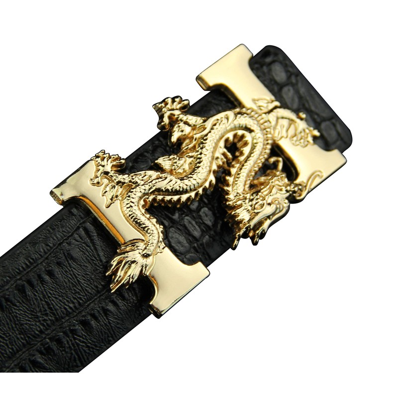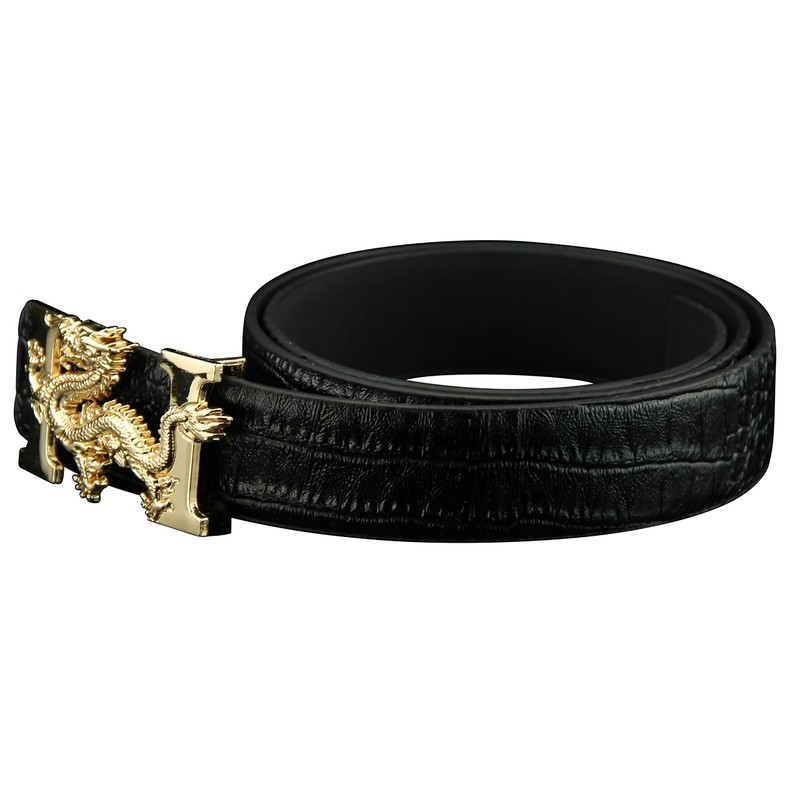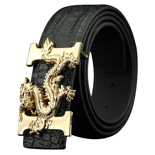 ALAKA mens Dragon Buckle Alligator Pattern Leather Belt, Black, Length 110cm ...