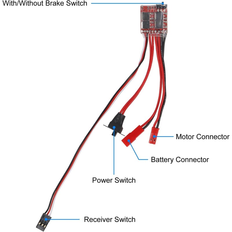 - 20A brush speed controller function: this controller has functions of forward, reverse and braking.
