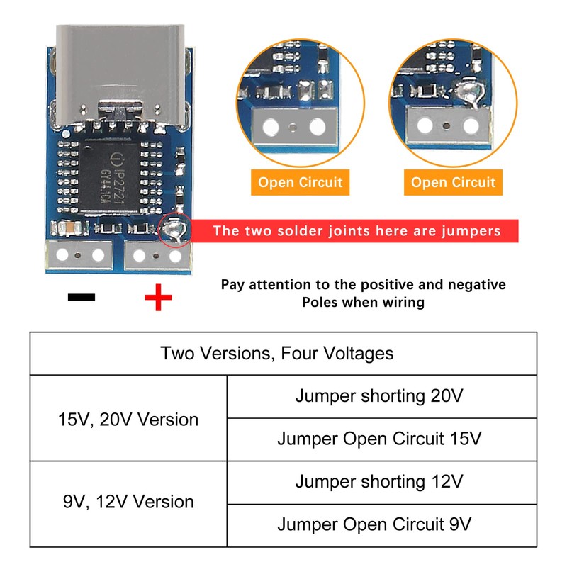 • This USB Type-C PD trigger module powers an electronic project or converts old hardware to use the USB-C power supply.