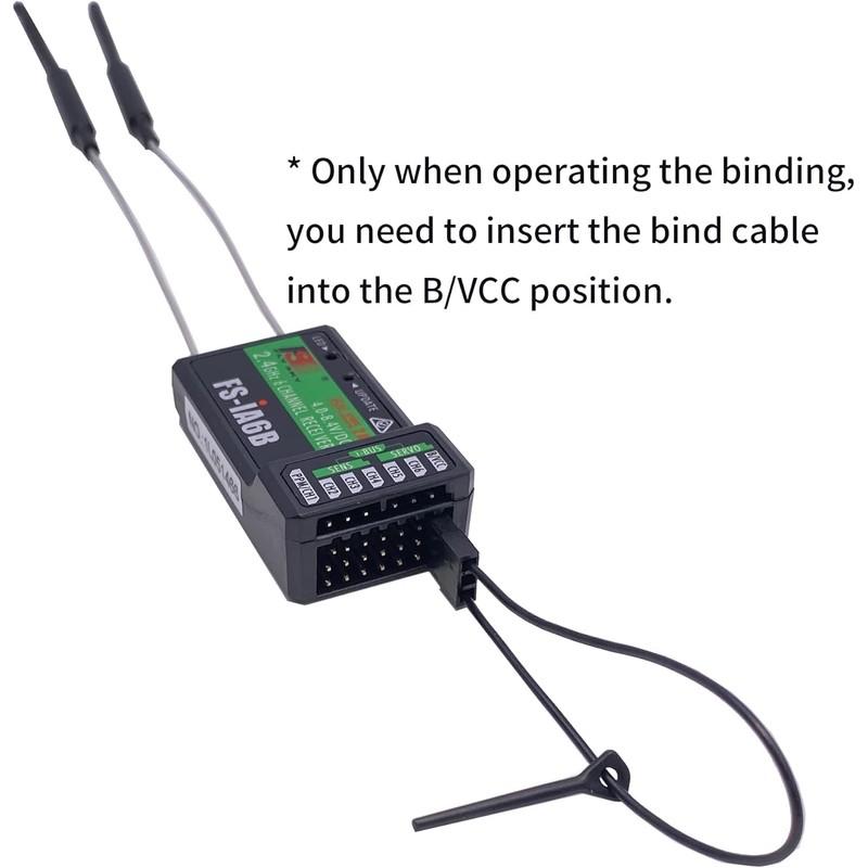 1, Connect the supplied "Bind Cable" to the B/VCC port on the receiver.