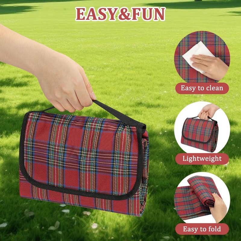 - Foldable and portable: The picnic camping blanket comes with a Velcro flap space-saving design for easy carrying and storage. Equipped with a convenient carrying handle, it can be folded into a car trunk, picnic basket or stroller when not in use.