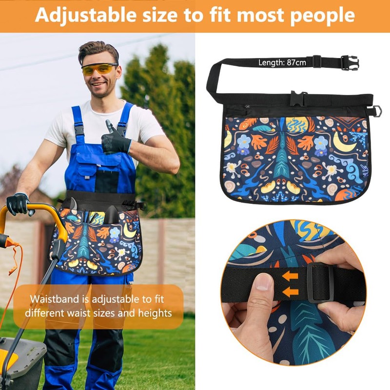 • EFFICIENT AND PRACTICAL Harvest ApronEquipped with an adjustable strap and a convenient quick buckle design, it ensures that the tool belt can be firmly attached to the body and used at any time.