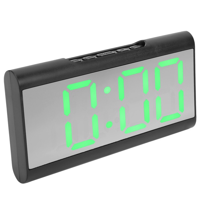 Alarm Clock LED Digital Display Mirror USB Charging Desktop Clock for Bedroom Home Office SchoolGreen