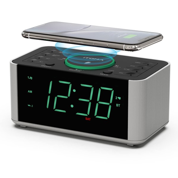 Alarm Clock Radio with 10W Wireless Charging, Snooze,Bluetooth, Dual Alarm, 1.4'' LED Display, Dimmer, USB Charging Clock for Bedside iTOMA CKS910