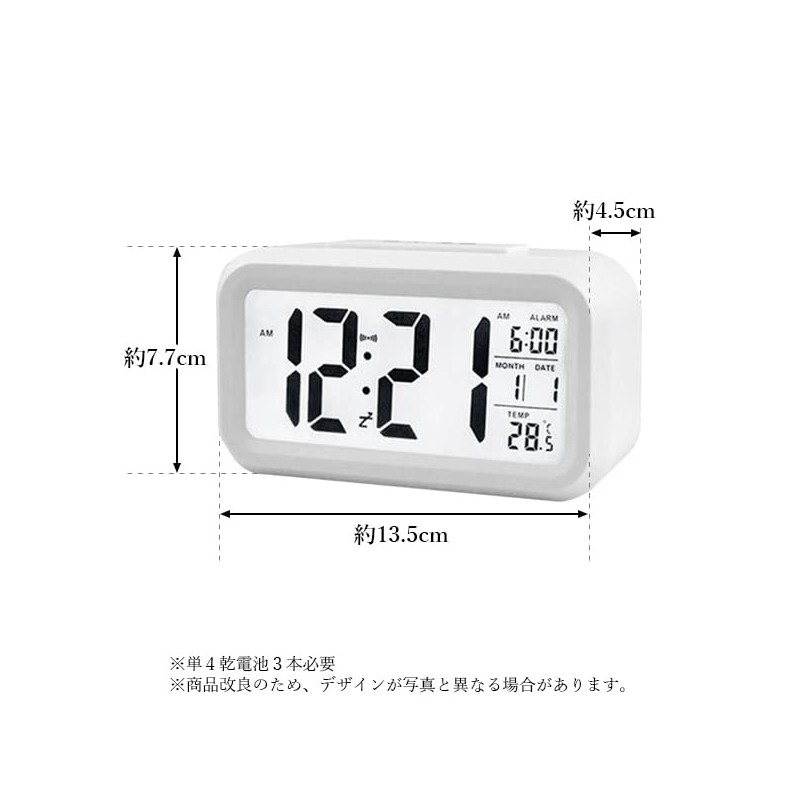 Alarm Clock, Table Clock, Stylish, Digital, Light, Easy to Read Time, Simple, Thermometer, White, Multifunction