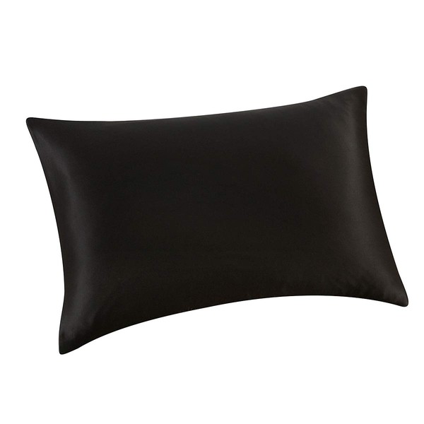ALASKA BEAR Silk Pillowcase for Hair and Skin Beauty Sleep 100 Real Mulberry Silk Anti-Aging Pillow Slip Case Cover Standard Size with Zipper (1pc, Black)