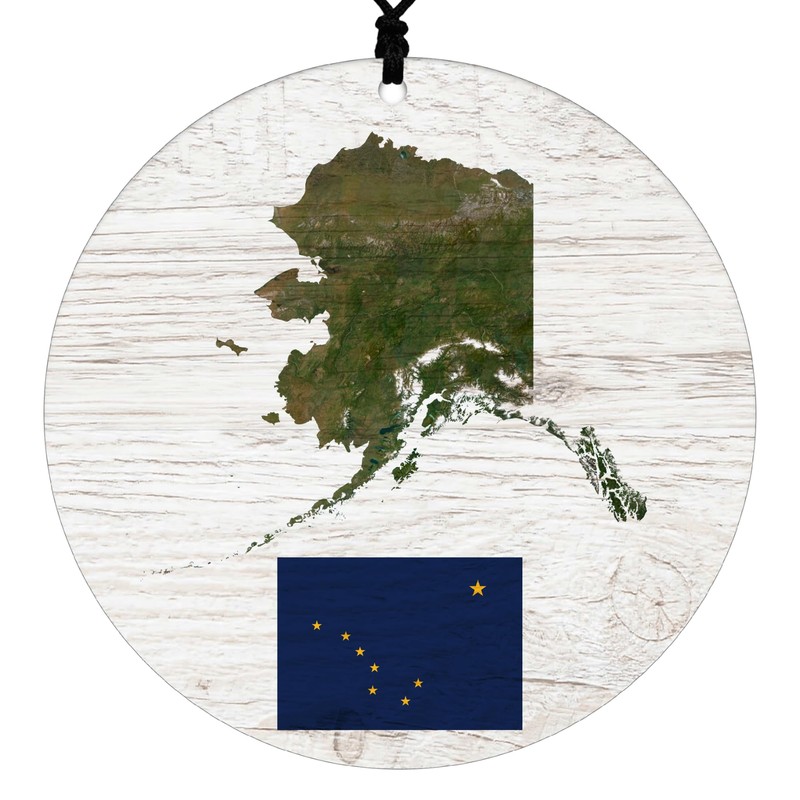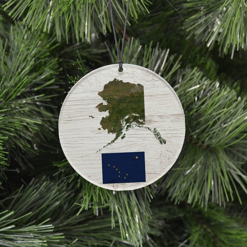 Alaska Christmas Ornament - Rustic Style Featuring State Flag and Terrain Map - 2025 Acrylic Tree Decoration - Holiday Gift and Home Decor