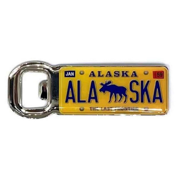 Alaska License Plate Bottle Opener with Magnet (Moose)