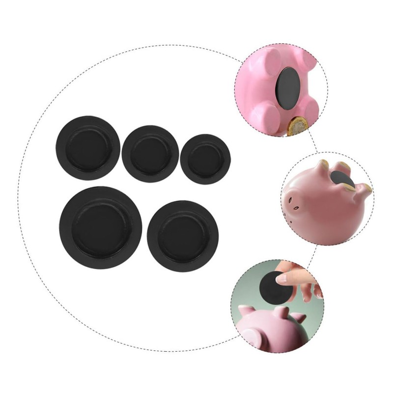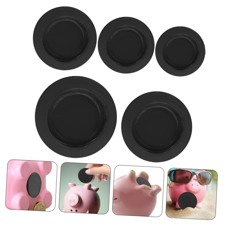Alasum 5pcs Rubber Piggy Bank Stoppers, Multi-Size Money Box Plugs (26mm, 25mm, 30mm, 32mm, 38mm), Black, Easy to Use, steady and Versatile for Home and Office