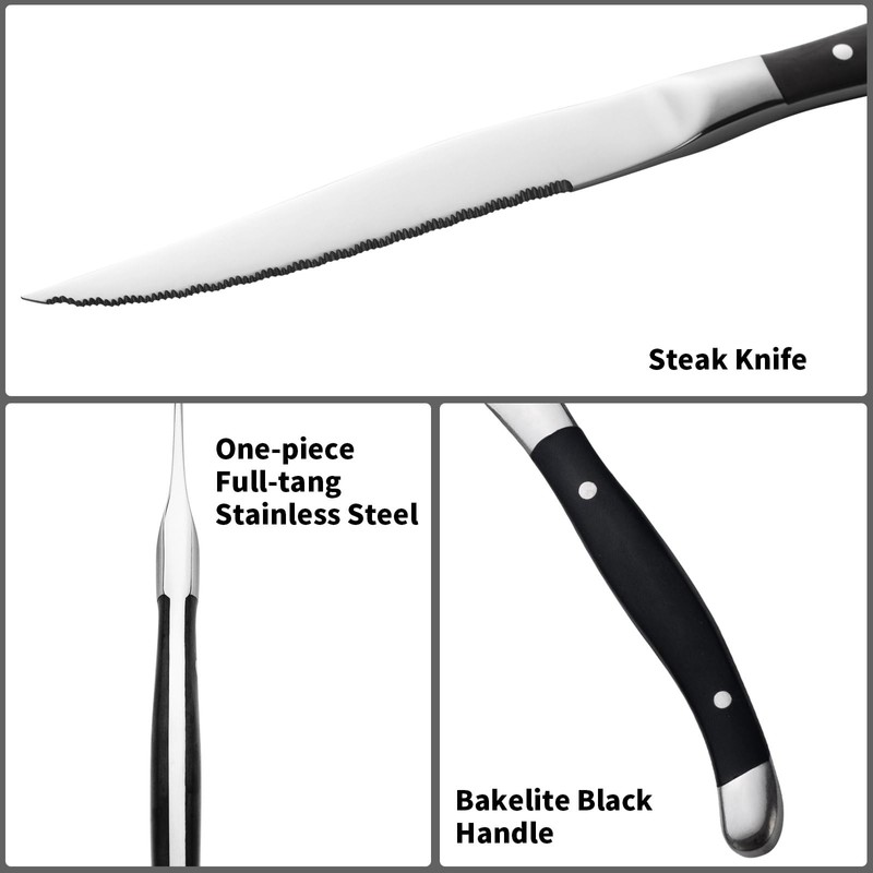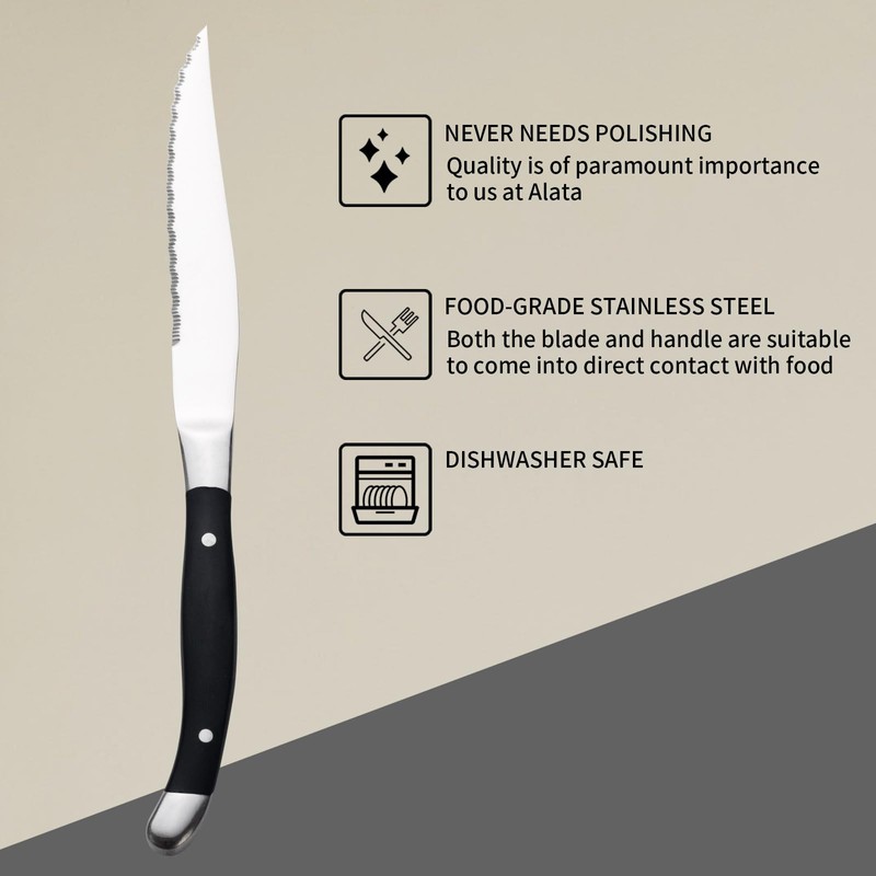 Alata Bakelite Black 8-Piece Steak Knives Set, Stainless Steel Steak Knife set with Serrated Edge, Razor-Sharp, Full-Tang Construction, Dishwasher Safe