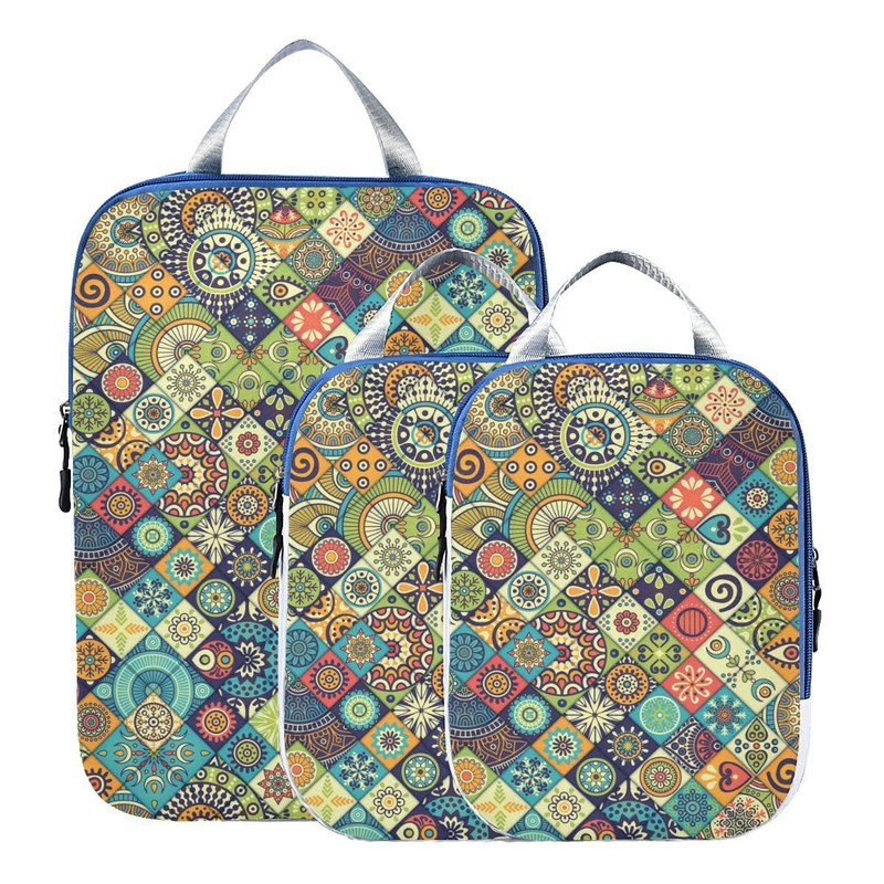 ALAZA Compression Packing Cubes for Suitcases 3 Set, Boho Pattern Travel Luggage Organiser Packing Cubes for Clothes Shoes Home Storage