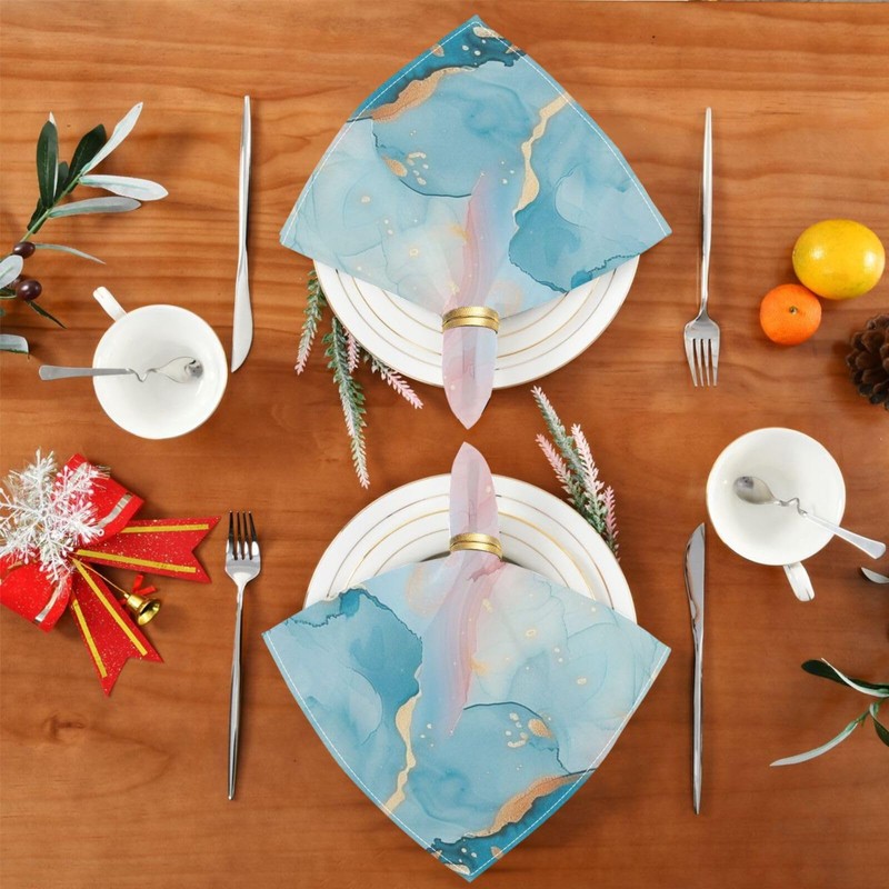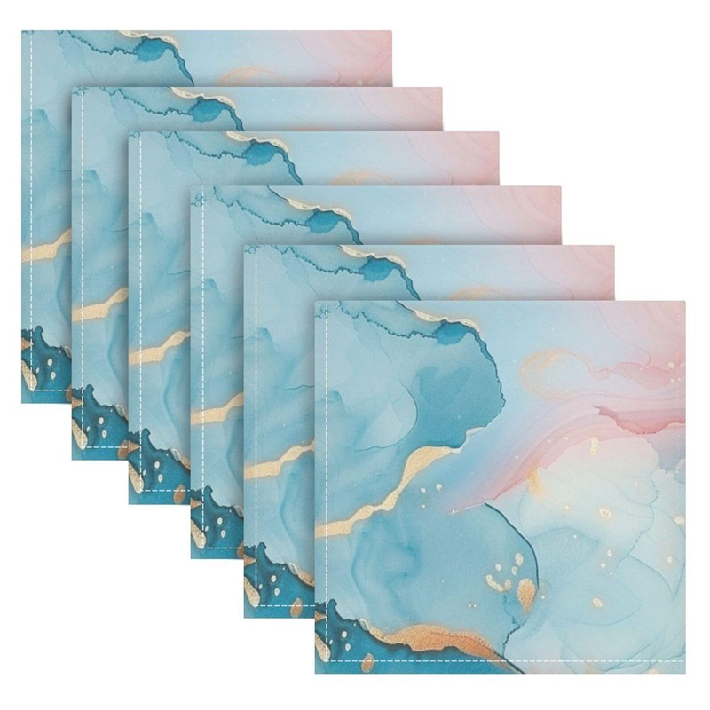 ALAZA Küchentuchservietten, 6 Stück, blaugrün, rosa, Marmor, weich, wiederverwendbar, waschbar, Tischservietten für Zuhause, Urlaub, Party, Hochzeit, 50,8 x 50,8 cm