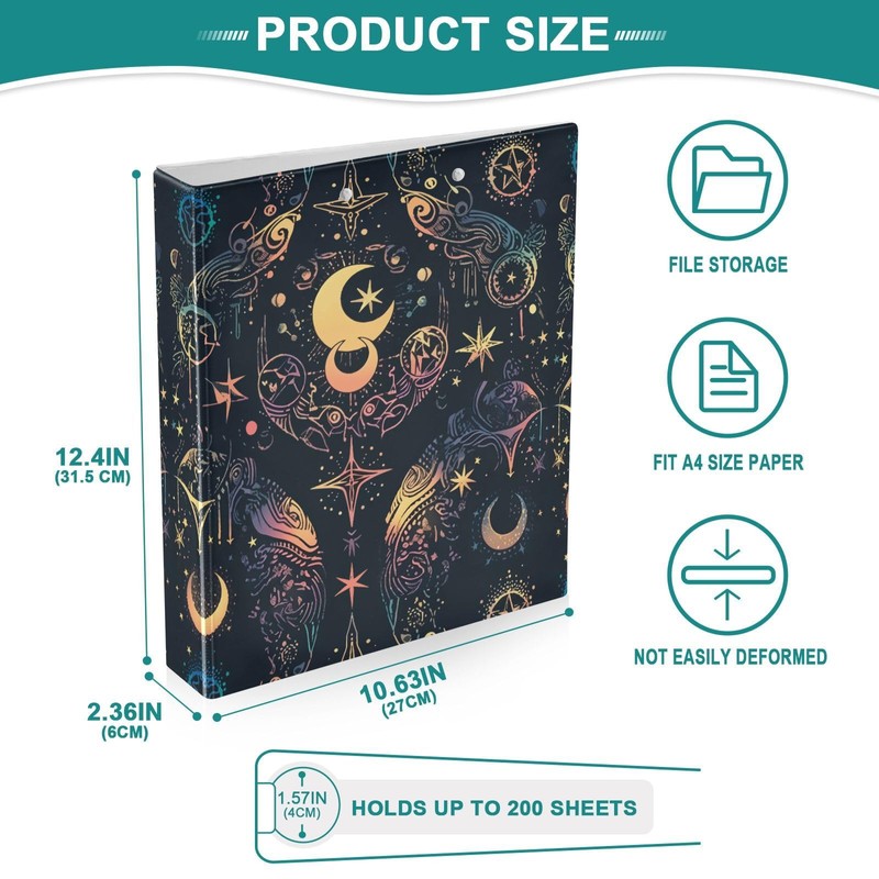 ALAZA Moon Stars Alchemy Witch 3 Ring Binder 1.5 Inch Three Ring Office Binders w/clipboard & 3 Pockets, Hold 200 Sheets, 1pc