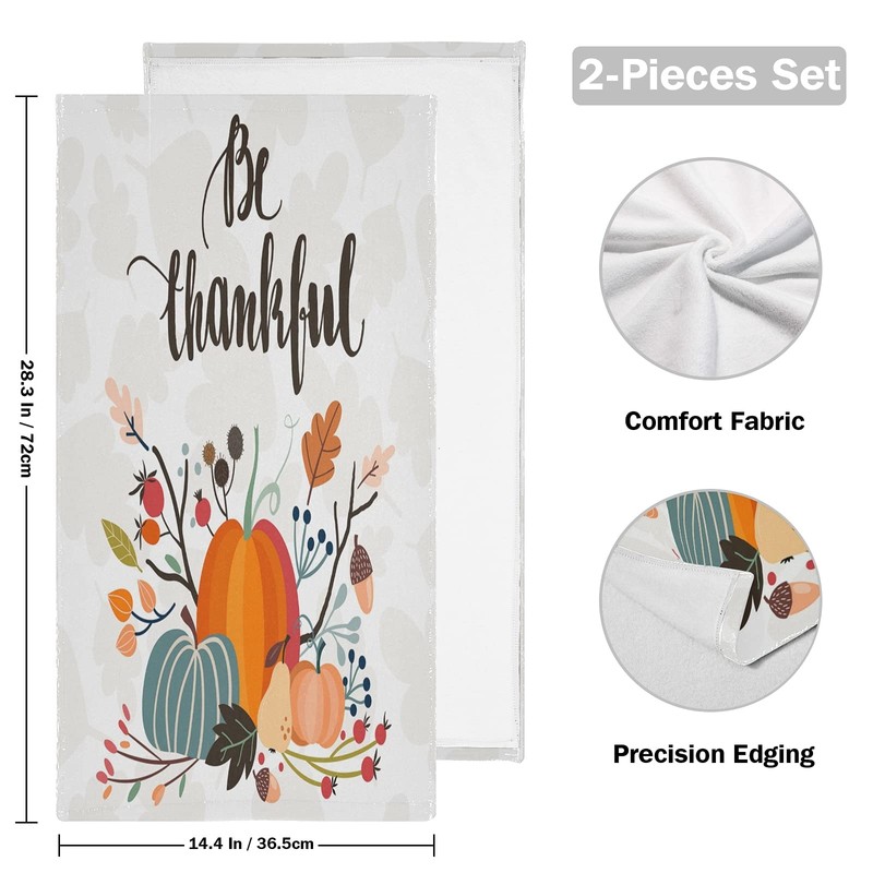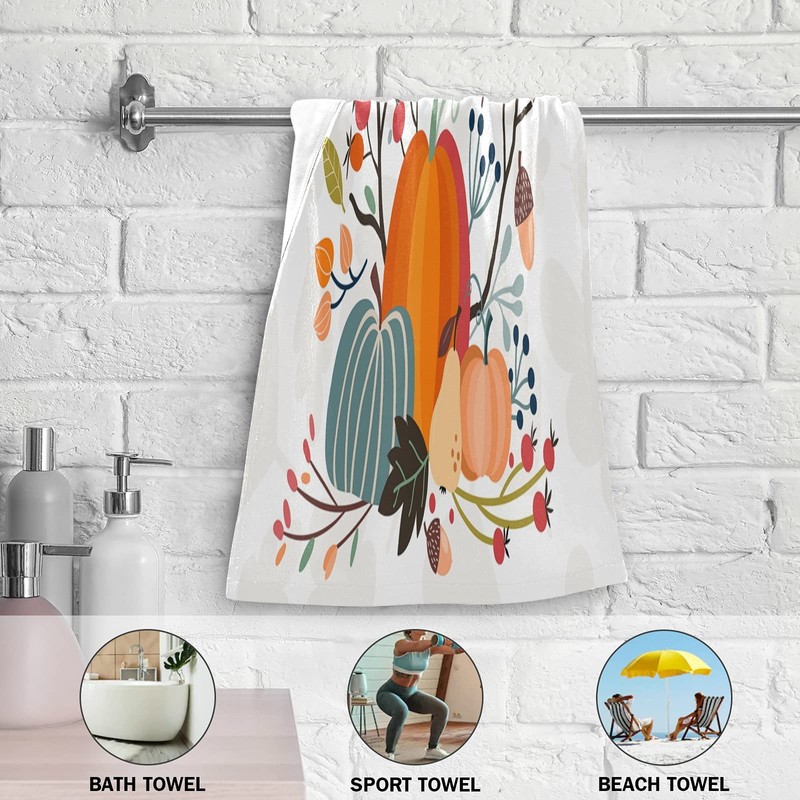 ALAZA Thanksgiving Day Fall Pumpkin Hand Towels Soft Absorbent Decorative Bath Towels Face Towels Set of 2 for Bathroom Gym Hotel Spa 28 X 14 Inch