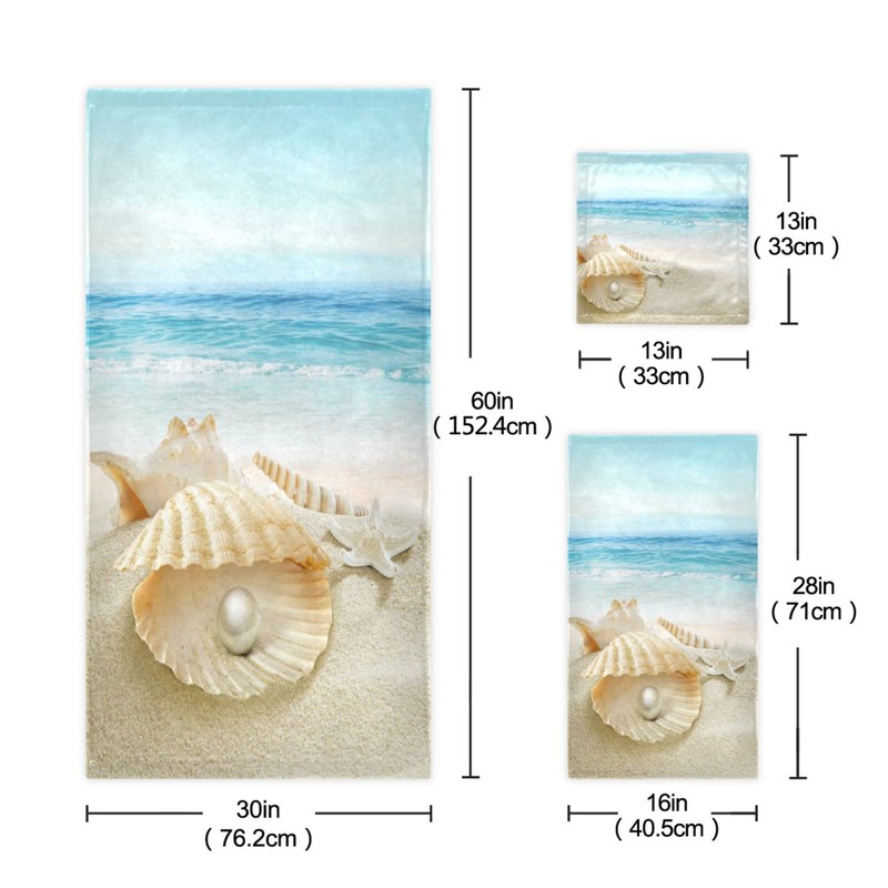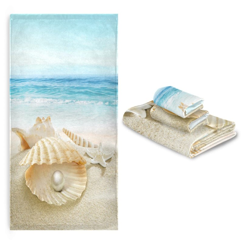 ALAZA Towel Bathroom Sets, Summer Beach Shell with Pearl Print Towels 3-Piece 1 Bath Towel 1 Washcloth 1 Hand Towel, Bath Towel Set of 3 Soft Multifuntion for Home Kitchen Hotel Gym Swim Spa