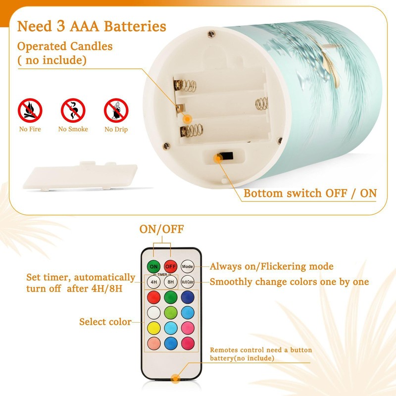 - Convenient Operation: Remote control candles allows you to set timer on your pillar flameless candles automatically turn on or off, also can adjust different flash mode lights according to your preferences, battery operated candle uses 3 AAA batteries, and the remote control uses 3V electronic buttons(Batteries are not included in this package)