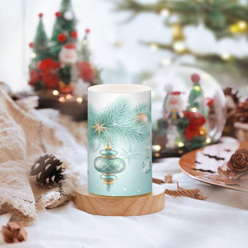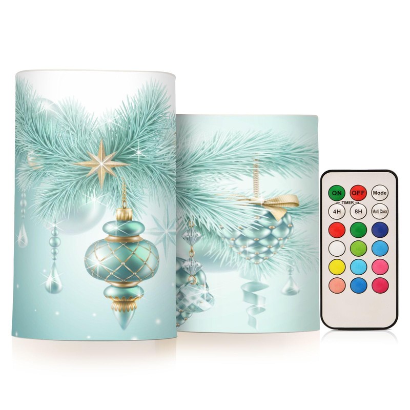 ALAZA Winter Festive Teal Christmas Tree Flickering Flameless Candles Battery Operated with Remote Timer,Tea Light Candles LED Pillar Votive Candles Set of 2 for Outdoor Indoor Decorations