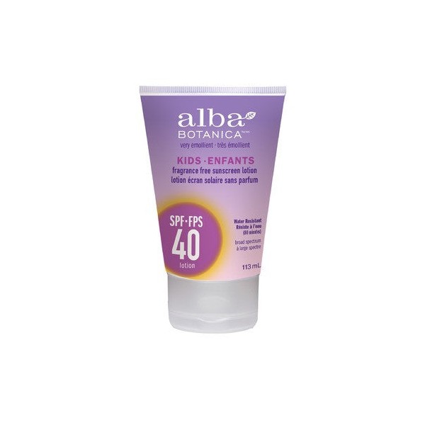 Alba Kids Sunscreen is a Broad Spectrum UVA/UVB SPF 40 protection which is water resistant, hypo-allergenic, and a quick-absorbing lotion that does not leave a white film. Dermatologist Tested. Complete sun protection: Formulated with broad spectrum protection from long wave, photo aging UVA rays and short wave, burning UVB rays. High Sun Protection Factors 40.