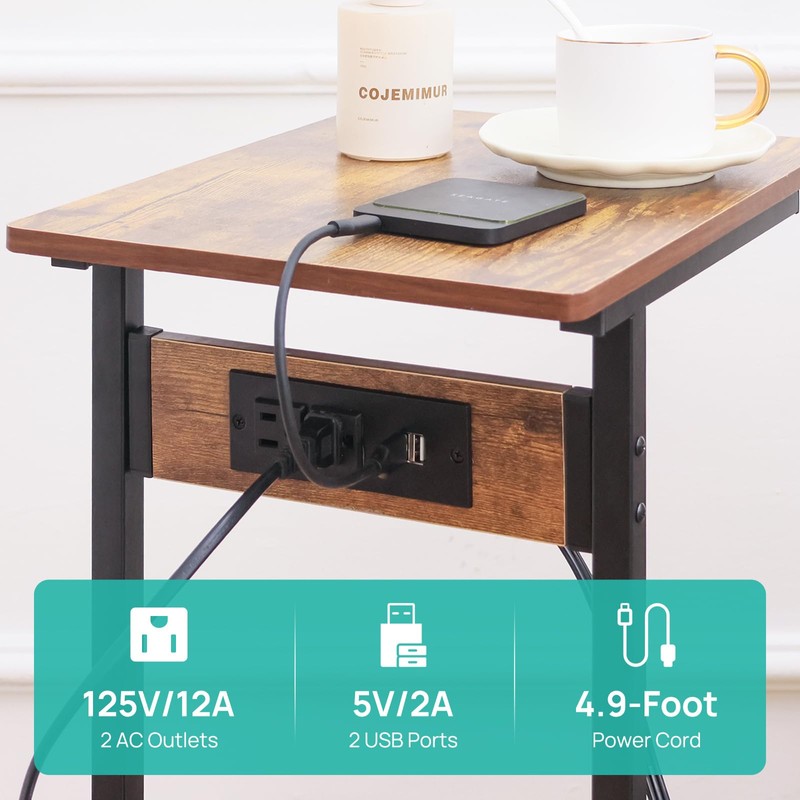 - [Side Table with Charging Station] This unique small end table is designed with a modern industrial look, suitable for lots of decorative styles. Besides, our bedside tables come with a charging station which is designed on the second layer to avoid accidents caused by spilled drinks.