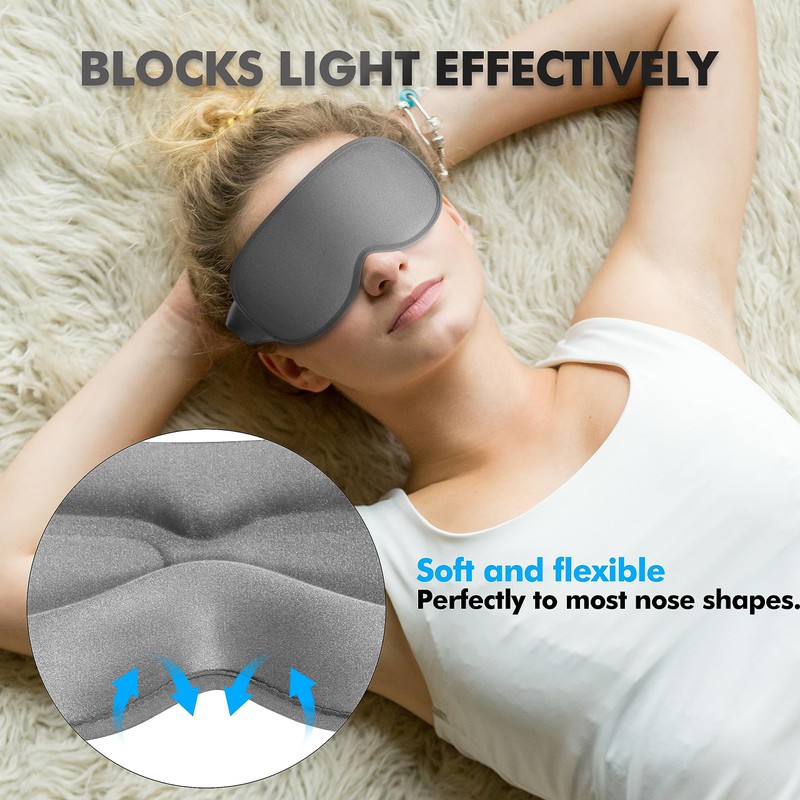 - Effectively blocking lights: Ergonomic sleep mask with upgraded nose cutout and 3D contours fit face snugly to block light completely, doesn't compress eyes or face. Promotes longer deep sleep.